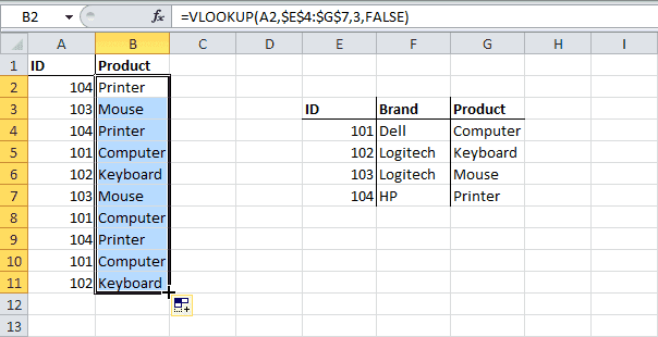 - Перетащите, чтобы скопировать ВПР из ячейки B2 вниз по столбцу в ячейку B11.