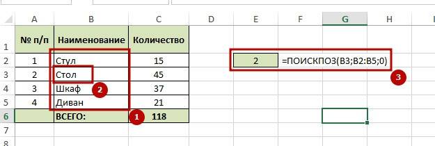 Функция ПОИСКПОЗ (MATCH)