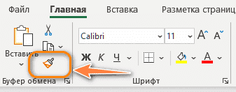 - На вкладке «Главная» в группе «Буфер обмена» нажмите кнопку «Формат по образцу». Указатель мыши изменится на кисть.