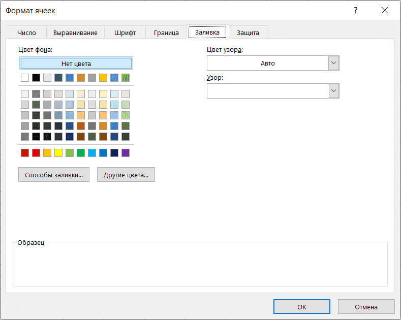 Вкладка «Заливка» - изменение цвета фона.