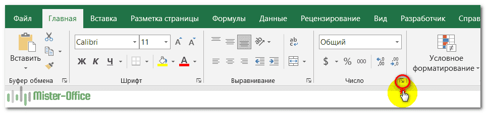 3. Щелкните стрелку запуска диалогового окна в правом нижнем углу группы Number.
