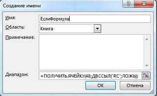 - Чтобы определить новое имя, перейдите в ФОРМУЛА -> Присвоить имя. В открывшемся окне (рис. 2) выберите подходящее имя, например, IfFormula. В поле Формула введите =Get.Cell(48,ДВССЫЛ(» RC » ,ЛОЖЬ)). Нажмите «ОК». Щелкните Закрыть.