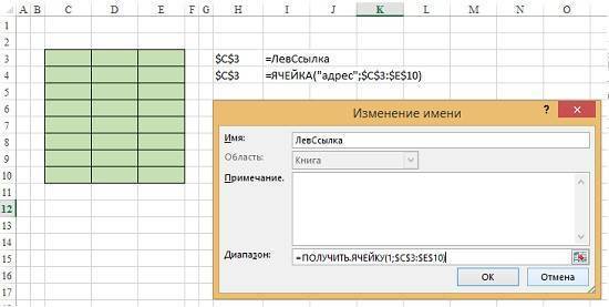 Рис. 4. Определение адреса верхней левой ячейки диапазона
