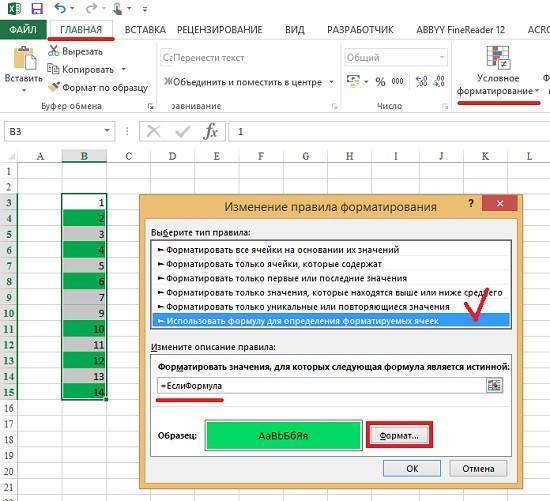 - Перейдите на ГЛАВНУЮ -> Условное форматирование -> Создать правило. В открывшемся окне выберите Использовать формулу для определения отформатированных ячеек. В нижней половине диалогового окна введите =IfFormula, как показано на рис. 1. 3. Excel может автоматически добавлять кавычки =»IfFormula» забери их Нажмите кнопку «Формат», в открывшемся окне «Формат ячеек» перейдите на вкладку «Заливка» и выберите цвет заливки. Нажмите «ОК.