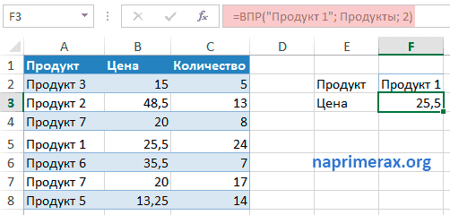 или даже =ВПР("Товар 1";Таблица6;2).