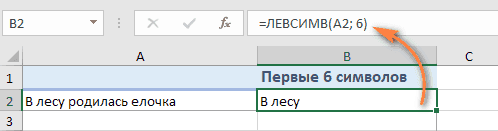 Например, чтобы извлечь первые 6 символов из A2, введите следующее выражение: