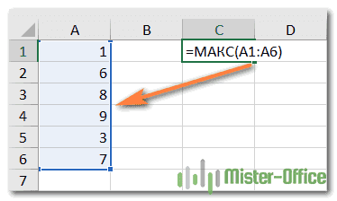 Например, чтобы найти наибольшее значение в диапазоне A1:A6, формула будет выглядеть так: