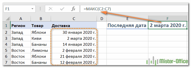 Во внутренней системе Excel даты представляют собой не что иное, как порядковые номера дней, поэтому функция MAX прекрасно их обрабатывает.