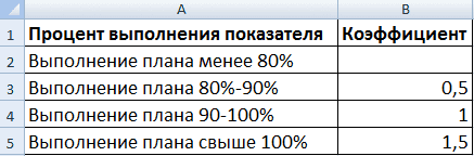 - Кр > 1 - сотрудник перевыполнил план и ему начислена полная премия и премия, размер которой зависит от процента перевыполнения плана.