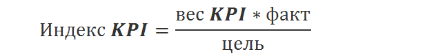 - Индекс KPI показывает уровень результата по отношению к норме.