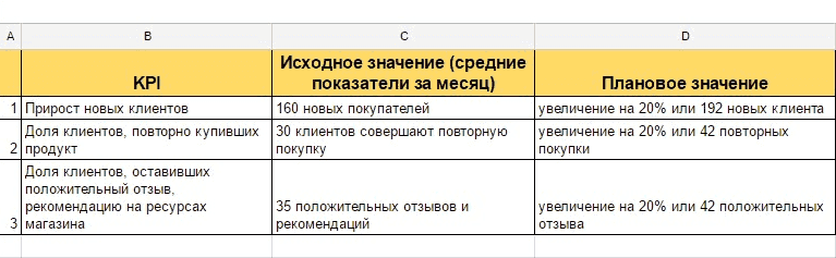 Благодаря этой таблице мы видим проблемную зону, которую не смог решить маркетолог. Возможно, это результат неправильной стратегии повышения лояльности клиентов. С другой стороны, задача может провалиться из-за неправильного плана. Так или иначе, эту сферу необходимо взять под контроль. Если ситуация не улучшится, стоит пересмотреть требования к KPI.
