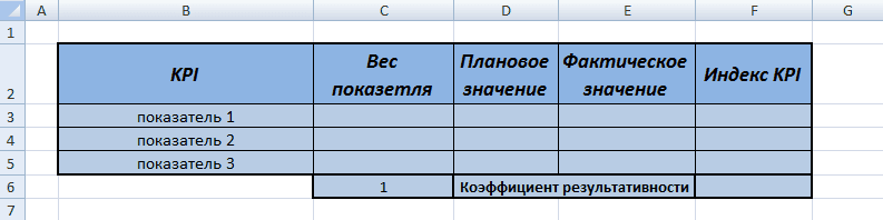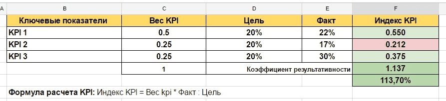 Шаг 4. Рассчитываем KPI, пример которого показан ниже: