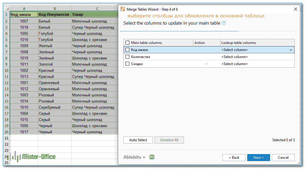Шаг 4. Выберите столбцы, в которых необходимо обновить информацию.
