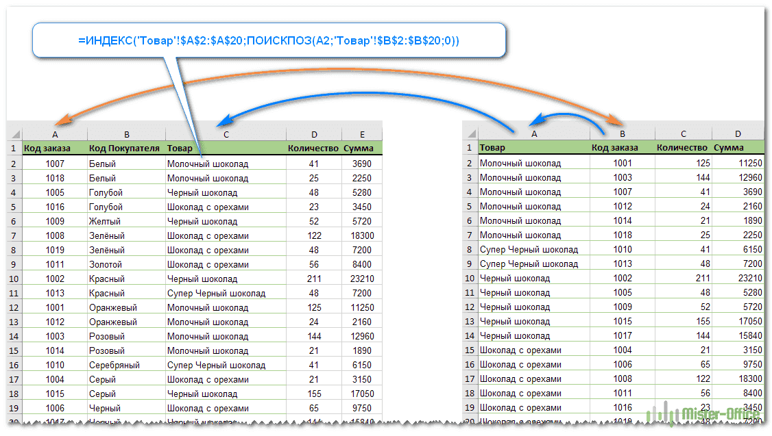Как видите, порядок заказов в основной таблице не совпадает со вторым. Так что простой метод копирования/вставки не сработает.