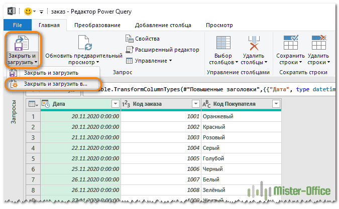 - В редакторе запросов нажмите «Закрыть и загрузить.