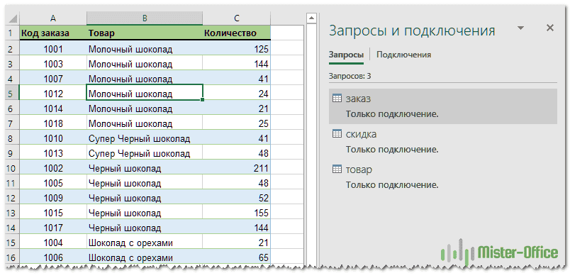 Это создаст соединение с именем вашего диапазона и отобразит его на панели «Запросы и соединения», которая появится в правой части вашей книги.
