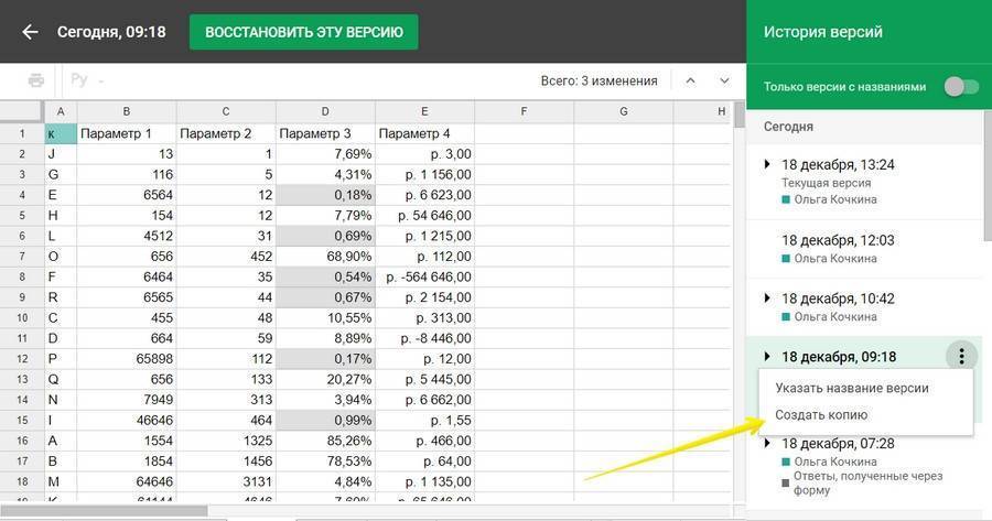 Как восстановить версию Google Таблиц