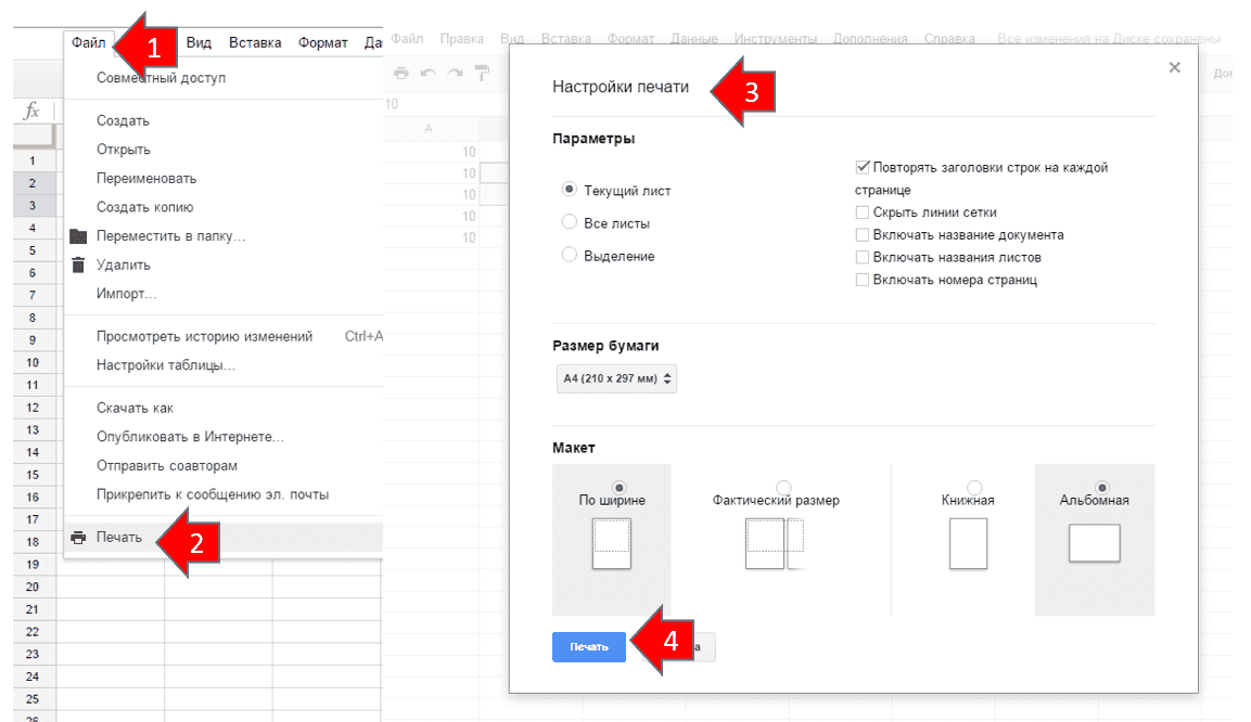 Чтобы распечатать данные, действуйте так же, как и в других процессорах электронных таблиц. Используйте меню «Файл» -> «Печать» или просто нажмите комбинацию клавиш Ctrl + P. Затем следуйте инструкциям на экране, настройте параметры печати, выберите принтер и отправьте документ на печать.