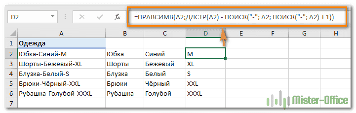 = ВПРАВО (A2; DLSTR (A2) - ПОИСК (""; A2; ПОИСК (""; A2) + 1))