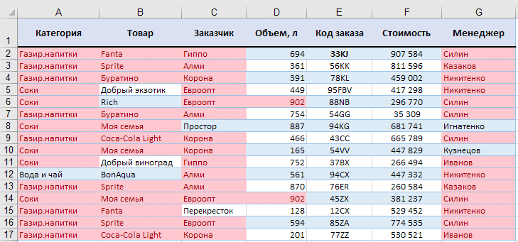 В предыдущем примере показано, как раскрашивать целые строки, когда повторяющиеся значения отображаются в определенном столбце. Но что, если вы хотите отображать строки с одинаковыми значениями в нескольких столбцах? Или как отличить от них точно такие же, у которых точно такие же значения?