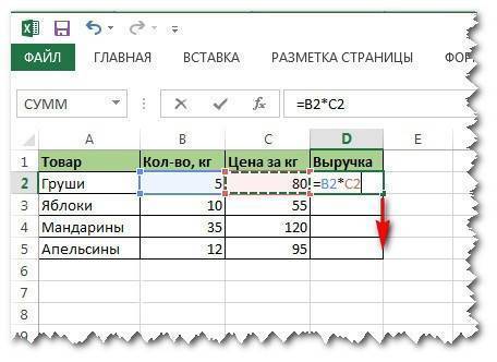 Конечно, в этом примере можно попробовать растянуть формулу вниз с помощью закладки автозаполнения, но в этом случае ячейки будут изменены автоматически. Итак, в ячейке D3 будет другая формула, где цифры будут заменены соответственно на 3. Далее по схеме — D4 — формула примет вид = B4 * C4, D5 — аналогично, но со знаком номер 5 и так далее.