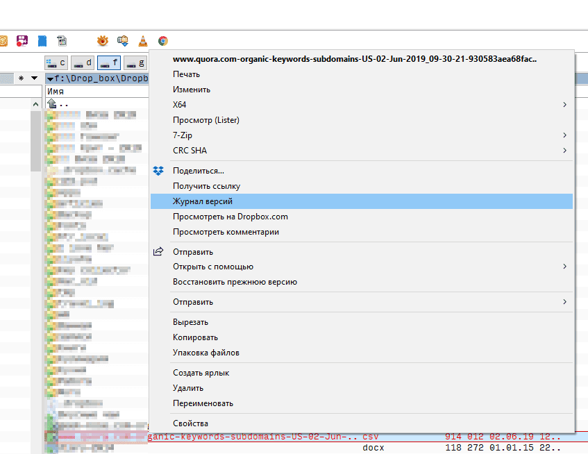 Функция «История версий» изначально работает в Dropbox, вы можете найти ее через контекстное меню файла или папки.