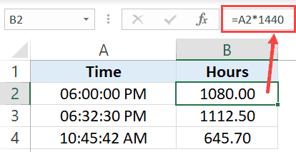 - Чтобы перевести время в минуты, умножьте значение времени на 24 * 60.