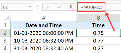 Приведенная выше формула удаляет целую часть и дает вам десятичную часть даты.