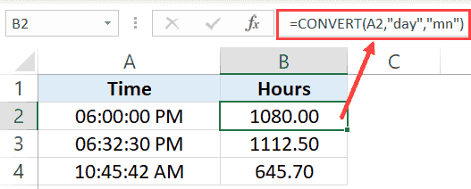 Второй аргумент сообщает функции, что значение в ячейке A2 находится в формате дня, а третий аргумент («mn») сообщает ей, что нужно преобразовать его в минуты.
