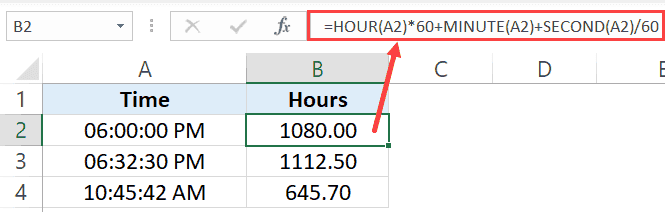 =ЧАС(A2)*60+МИНУТЫ(A2)+СЕКУНДЫ(A2)/60