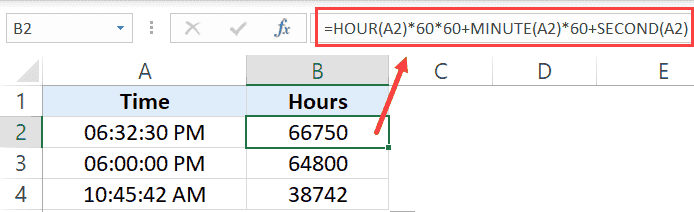 =ЧАС(A2)*60*60+МИНУТЫ(A2)*60+СЕКУНДЫ(A2)