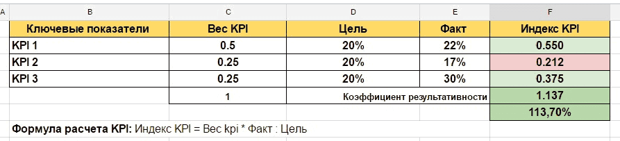 Шаг 4. Рассчитаем KPI, пример ниже: