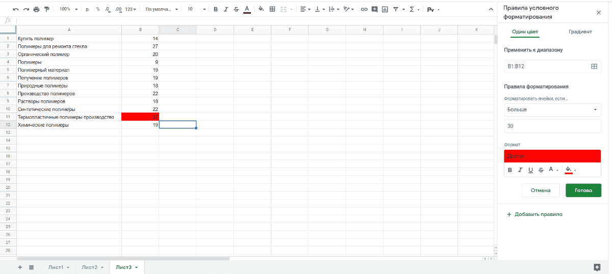 Синтаксис COUNTIF в Google Таблицах