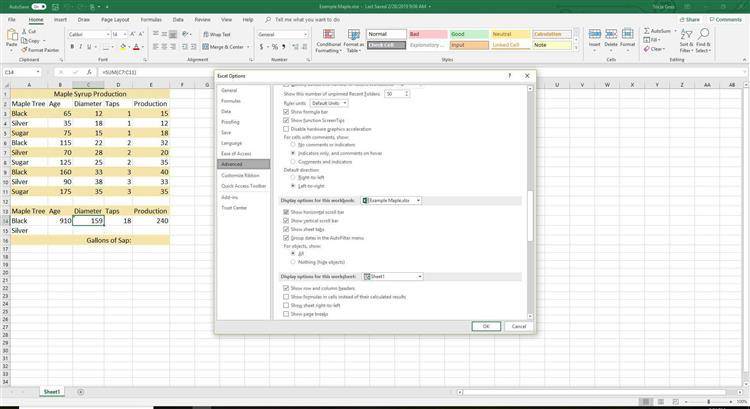 Прокрутите вниз до раздела «Параметры отображения этой книги» (примерно на полпути).