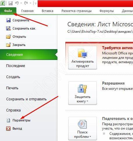 - Заходим в Excel и выбираем вкладку «Файл»;