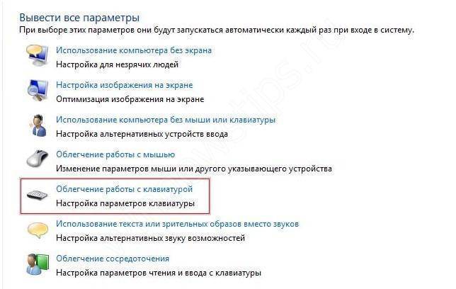 - Выберите команду «Сделать клавиатуру удобнее», введите ее и установите флажок «Включить залипание клавиш»;