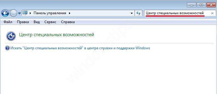 - В появившемся окне (Панель управления) в поле для ввода поискового запроса (справа вверху) введите «Центр специальных возможностей»;