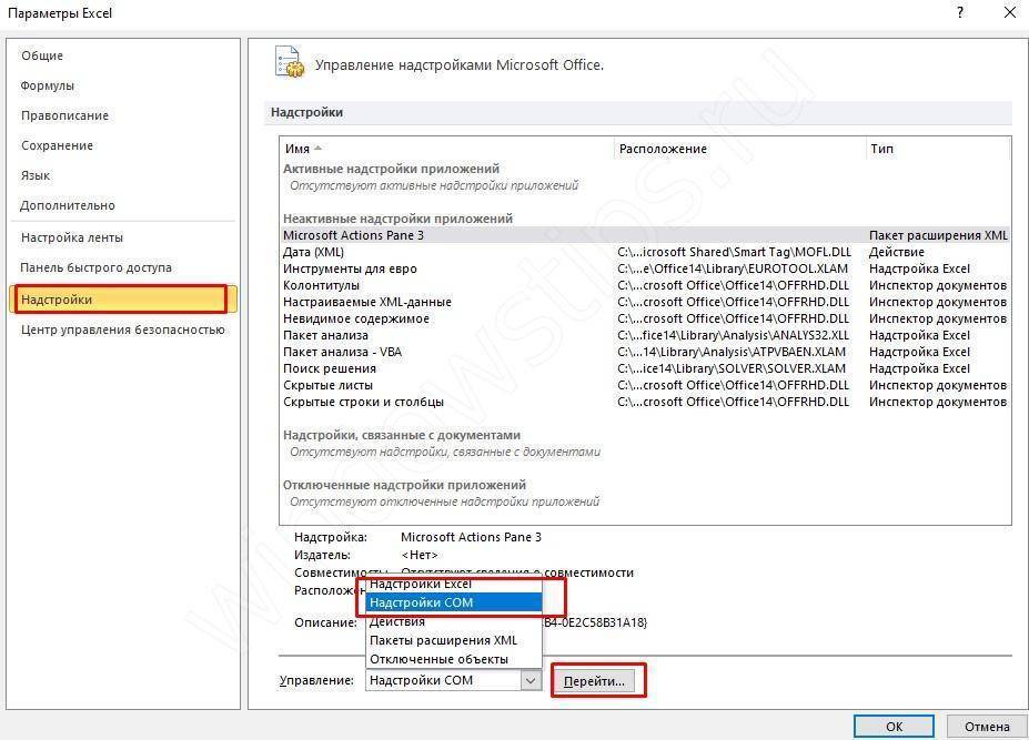 - Конфликт элемента надстройки Excel;
