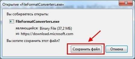 После этого появится небольшое окно для загрузки файла FileFormatConverters.exe. Сохраните его на свой компьютер или ноутбук, а затем установите.