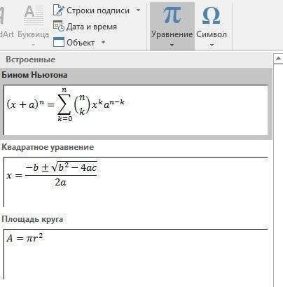 Вставка готовых уравнений, использование шаблонов и панели символов для написании формул по математике, физике и химии.