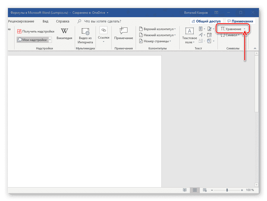 В программе Microsoft Word можно создавать и добавлять уже готовые формулы, размещая их в любых местах текста или в ячейках таблицы.