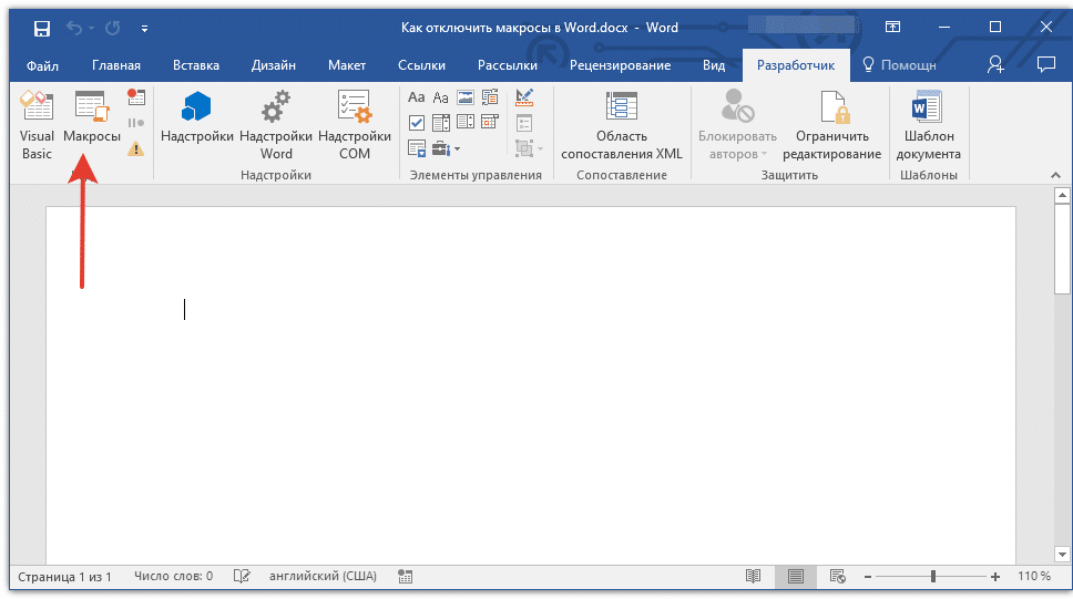 Макросы - это набор команд для автоматизации часто выполняемых задач. В целях безопасности Microsoft рекомендуют отключить эту функцию в Word.