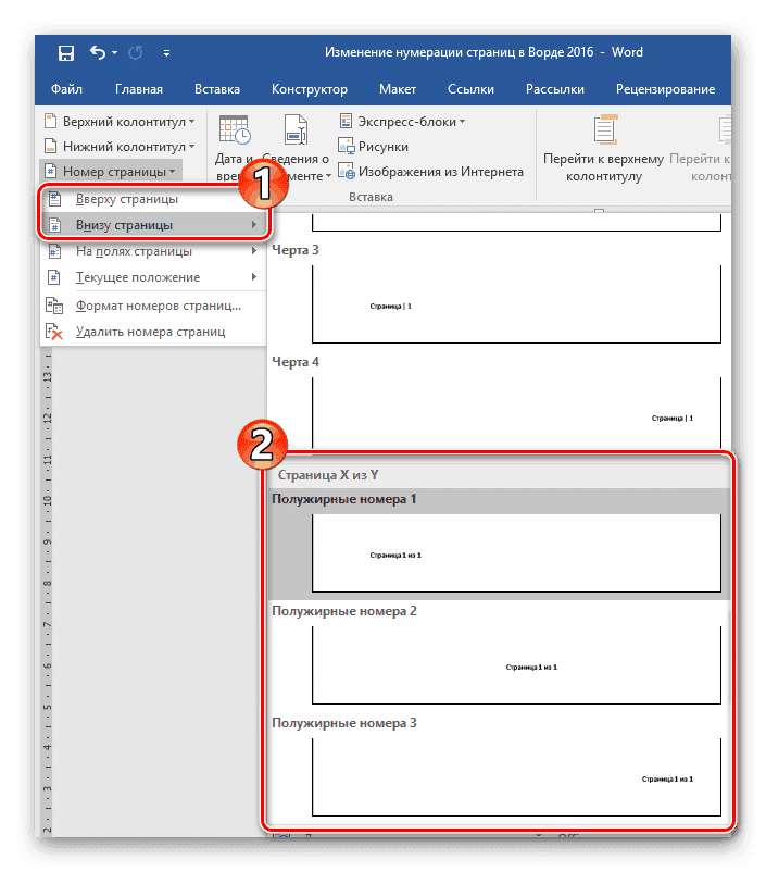 Измените положение нумерации листов с помощью соответствующих пунктов меню.