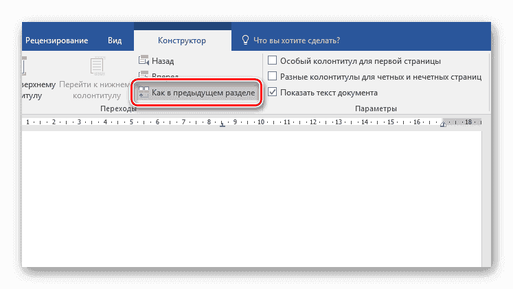 Для перехода между верхним и нижним колонтитулами, а также между верхними и нижними колонтитулами различных разделов используйте соответствующие кнопки в группе команд «Переходы» на вкладке «Дизайн.