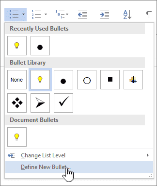 Щелкните стрелку вниз рядом со значком маркированного списка. .