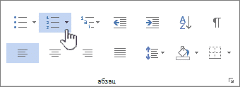 На вкладке «Главная» в группе «Абзац» щелкните стрелку рядом с кнопкой «Маркировка» или «Нумерация.