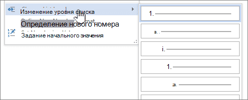 Поместите указатель на уровень списка редактирования и выберите нужный уровень.
