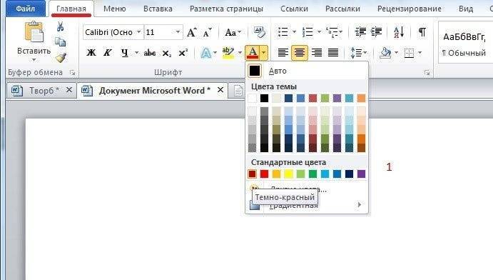 Например, щелкните стрелку рядом с кнопкой «Цвет шрифта» и выберите нужный цвет.