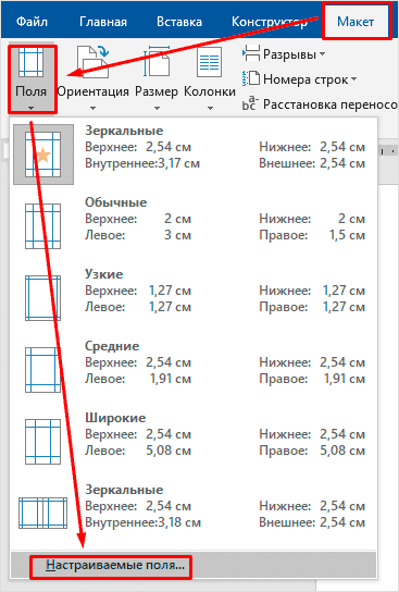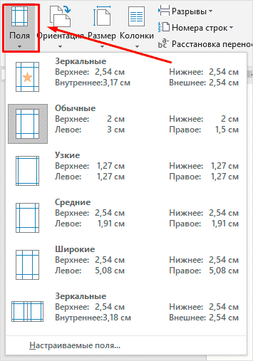 Если предложенные отступы вас не устраивают, вы можете установить свои личные параметры. Для этого перейдите к тому же пункту на панели инструментов и перейдите в нижнюю часть контекстного меню.
