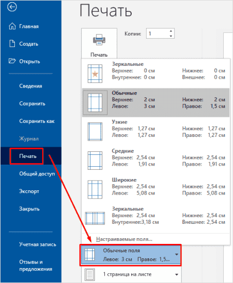 Настройки при печати